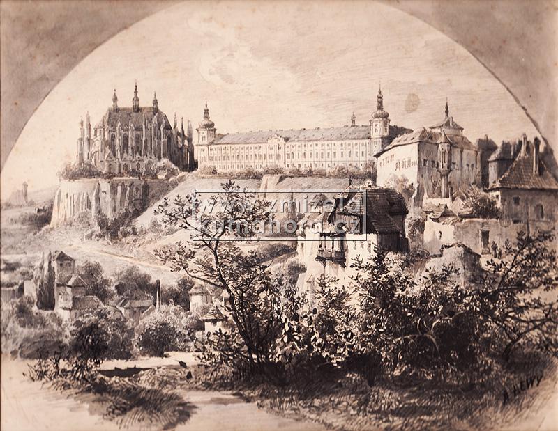 Na vedutách, tedy panoramatických vyobrazeních města pořízených z větší dálky, můžeme pozorovat nejstarší podobu města a jednotlivých objektů. V mnohých případech jsou tu zachyceny stavby, o jejichž podobě nemáme žádné jiné obrazové informace. Nejstarší veduta města pochází od Jana Willenberga, do svého skicáře si ji zanesl v roce 1602 při cestě po Čechách. Skica zachycuje město včetně kláštera v Sedlci, levá část s chrámem sv. Barbory však chybí, byla dodatečně oříznuta.