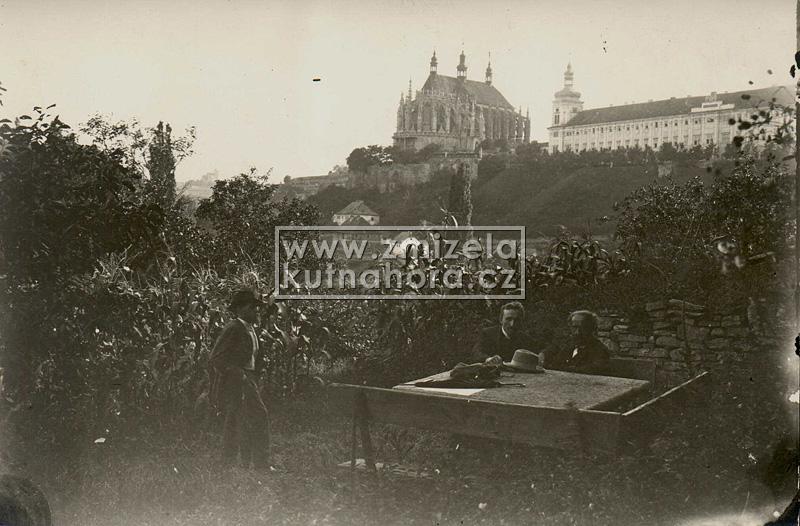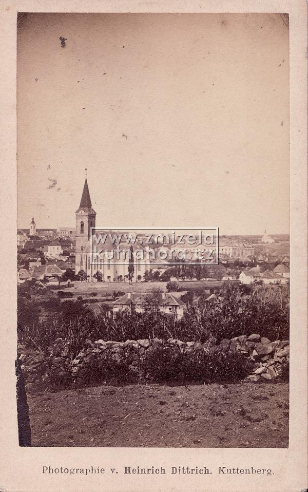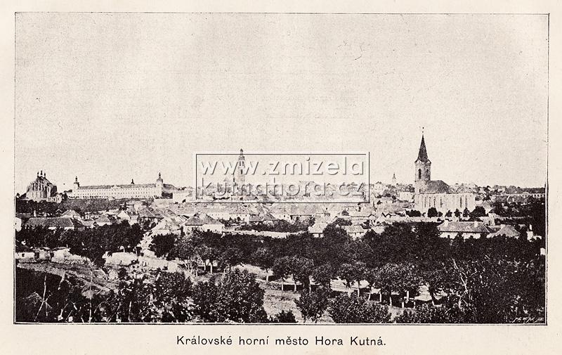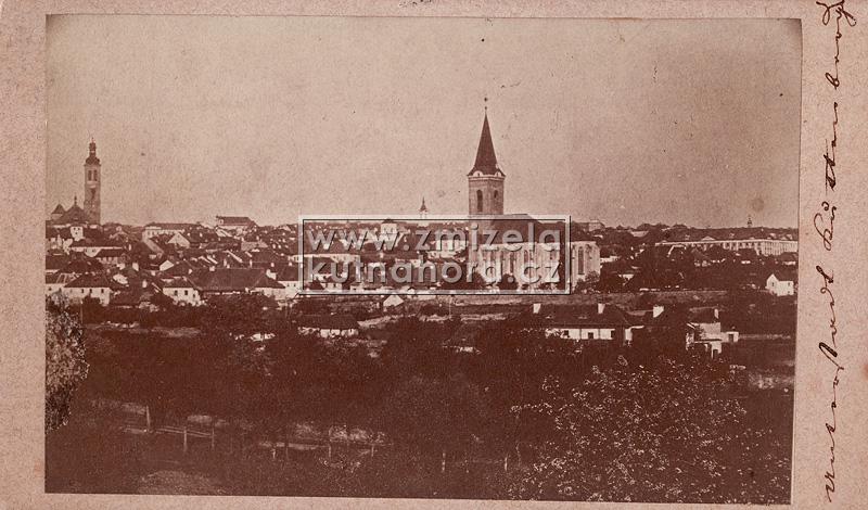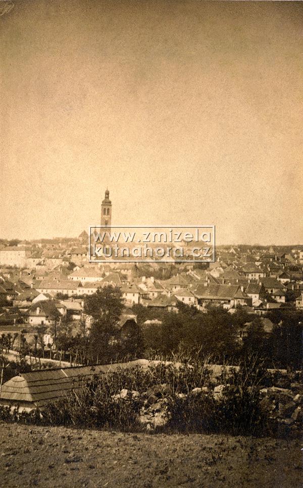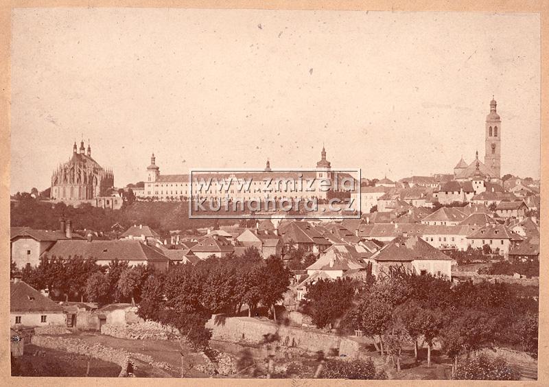Nejstarší celkové fotografie města tedy v našem archivu pocházejí od Jindřicha Dittricha, který v Kutné Hoře založil svůj ateliér v roce 1863. Předpokládáme, na základě detailů budov, že první jeho fotografie vznikaly brzy po tomto datu. Každý významnější fotograf města Kutné Hory zachytil alespoň základní pohled na městské panorama s chrámem sv. Barbory a Jezuitskou kolejí nebo z opačné strany střed města s kostelem sv. Jakuba a Vlašským dvorem. Připomeňme alespoň ty nejdůležitější, Karla Bellmanna, J. Steffela, bratry Výborný nebo Karla Herbsta.