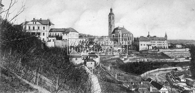 Nejstarší celkové fotografie města tedy v našem archivu pocházejí od Jindřicha Dittricha, který v Kutné Hoře založil svůj ateliér v roce 1863. Předpokládáme, na základě detailů budov, že první jeho fotografie vznikaly brzy po tomto datu. Každý významnější fotograf města Kutné Hory zachytil alespoň základní pohled na městské panorama s chrámem sv. Barbory a Jezuitskou kolejí nebo z opačné strany střed města s kostelem sv. Jakuba a Vlašským dvorem. Připomeňme alespoň ty nejdůležitější, Karla Bellmanna, J. Steffela, bratry Výborný nebo Karla Herbsta.
