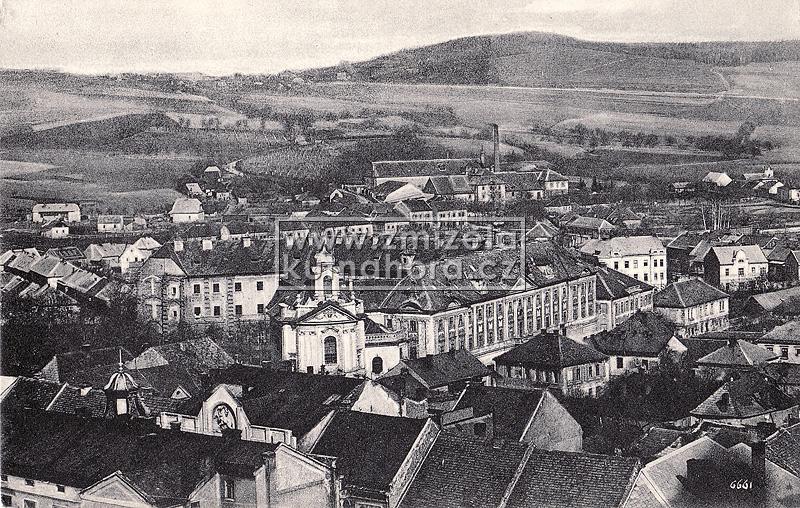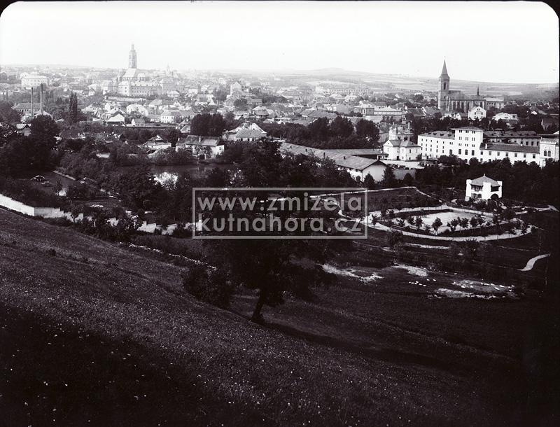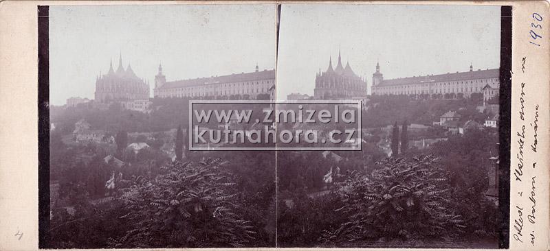 Nejstarší celkové fotografie města tedy v našem archivu pocházejí od Jindřicha Dittricha, který v Kutné Hoře založil svůj ateliér v roce 1863. Předpokládáme, na základě detailů budov, že první jeho fotografie vznikaly brzy po tomto datu. Každý významnější fotograf města Kutné Hory zachytil alespoň základní pohled na městské panorama s chrámem sv. Barbory a Jezuitskou kolejí nebo z opačné strany střed města s kostelem sv. Jakuba a Vlašským dvorem. Připomeňme alespoň ty nejdůležitější, Karla Bellmanna, J. Steffela, bratry Výborný nebo Karla Herbsta.