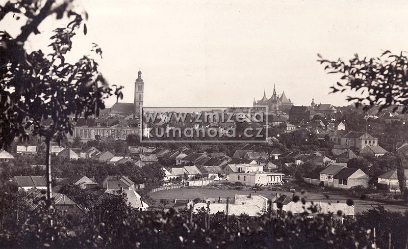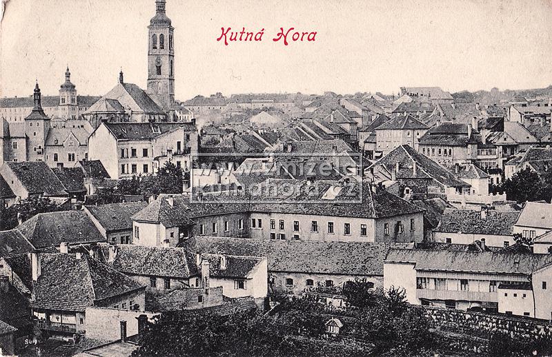 Nejstarší celkové fotografie města tedy v našem archivu pocházejí od Jindřicha Dittricha, který v Kutné Hoře založil svůj ateliér v roce 1863. Předpokládáme, na základě detailů budov, že první jeho fotografie vznikaly brzy po tomto datu. Každý významnější fotograf města Kutné Hory zachytil alespoň základní pohled na městské panorama s chrámem sv. Barbory a Jezuitskou kolejí nebo z opačné strany střed města s kostelem sv. Jakuba a Vlašským dvorem. Připomeňme alespoň ty nejdůležitější, Karla Bellmanna, J. Steffela, bratry Výborný nebo Karla Herbsta.
